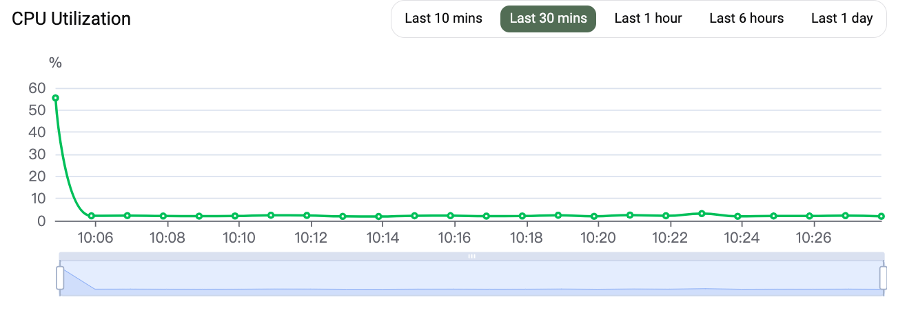 The VectorChord Cloud provides several graphs for monitoring system and database metrics. You can access the Metrics dashboard from the cluster details in the VectorChord Cloud Console. Observable metrics include:
